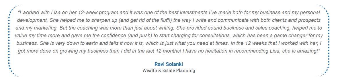 Alternatively, drop me an email (lisa@makeyourcopycount.com) and let me know what your biggest challenges are right now.