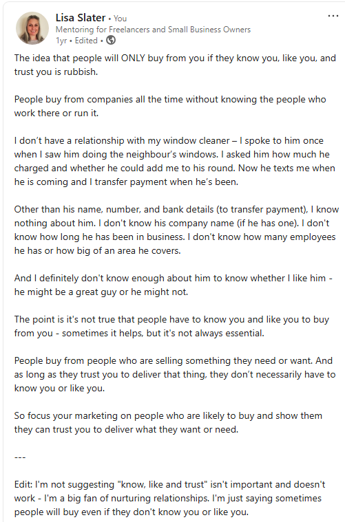 A couple of years ago, I wrote a LinkedIn post about know, like and trust (KLT), and I got blasted in the comments by some guy who disagreed with me.