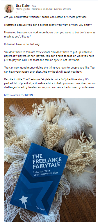And sales posts don't have to be "sleazy" or "spammy" or "cringey". Check out my promo video - it identifies a problem my ideal clients might be having, explains how I can help, and lets viewers know what to do next: